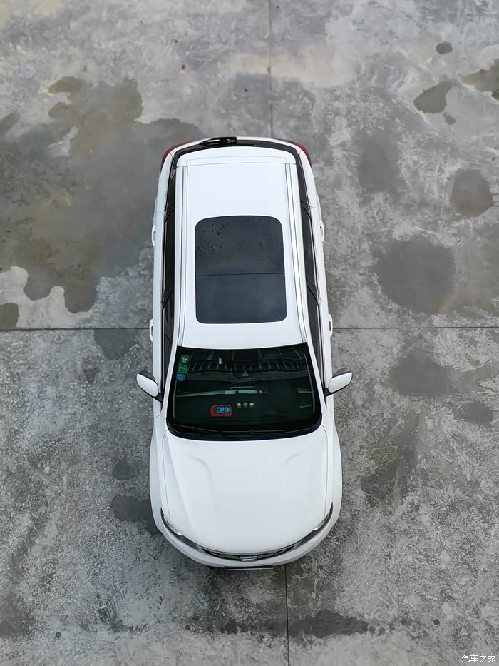 上帝视角看上去的博越,硕大的全景天窗从上面看上去既通透又明亮,车身顶部的各种线条比例也恰到好处,当初选择白色就是因为白色整体大气纯洁而且非常的耐脏