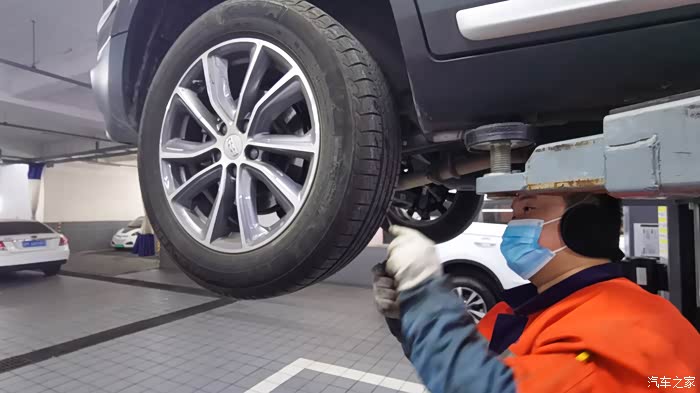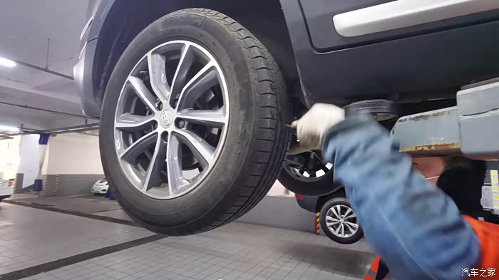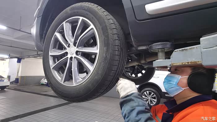 昨晚保养之后 ,技师师傅开始对我的爱车进行仔细的体检,检查每个轮胎的缝隙处的小石头子 并及时清除以防扎进轮胎而爆胎的隐患。