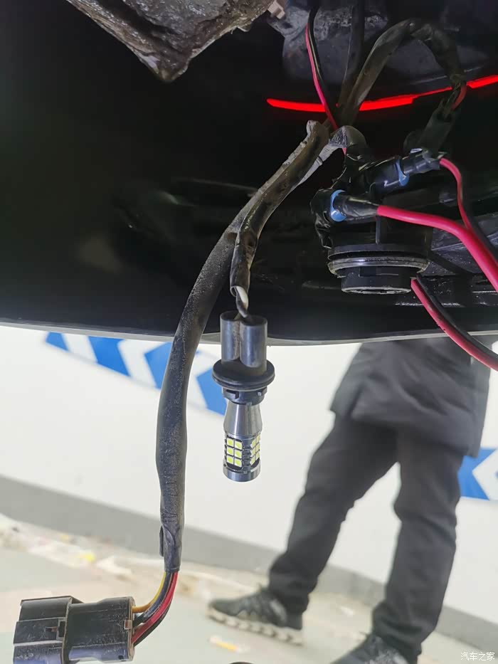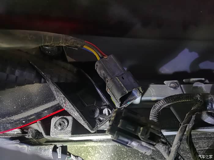 右边就方便很多,因为我把右转向灯、倒车灯泡一排灯都拆卸下来了(最右边雾灯拿不下来就没有拆卸,空间太小灯泡出不来),顺着线找到上面图的总线段子,拔掉后方便接线🧵