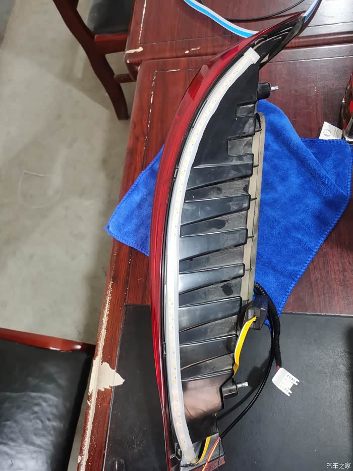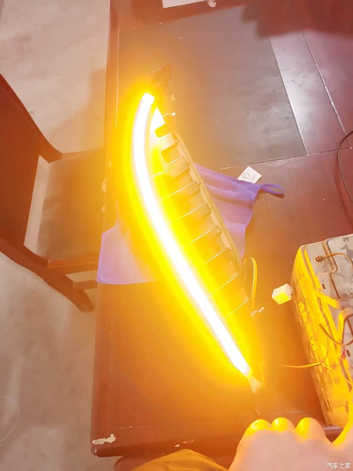 此灯是带日行灯的,处理了一下,把灯带的LED灯泡面朝上,买来时是面对着背胶【因为是(日行灯)为了照大灯,让大灯变色的,我不接它,只要转向灯组】