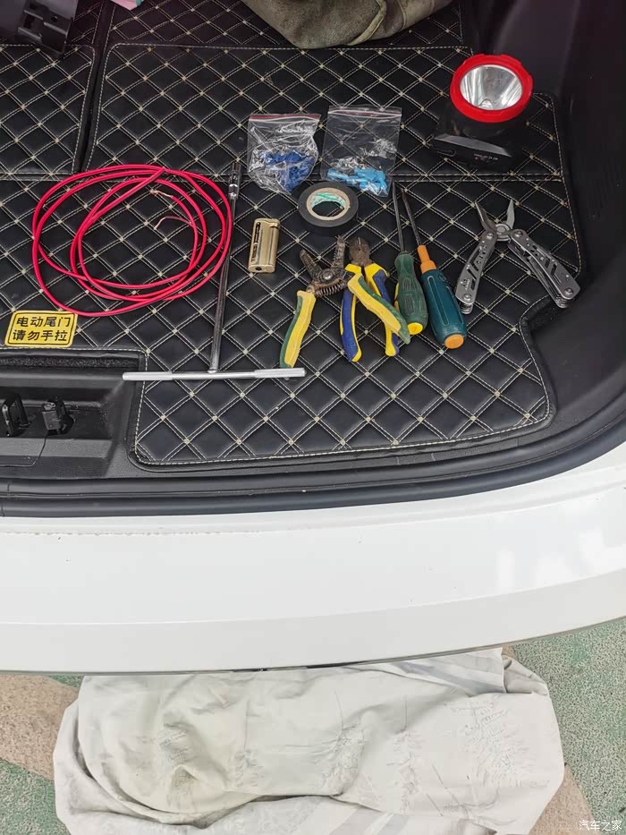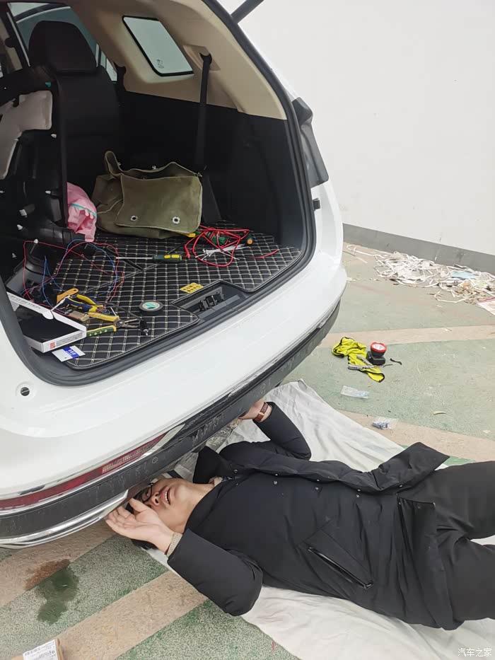 (后门处左右都要拆)此处拆除时左右晃动来拆(四个卡扣组成),拆掉后可以看到后保险杠接缝,我是靠内测小点缝向下穿的线,之后人躺在车下就能看到穿的线,【最后完工后再扣上】