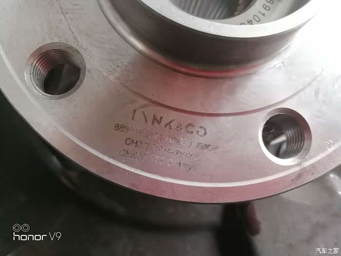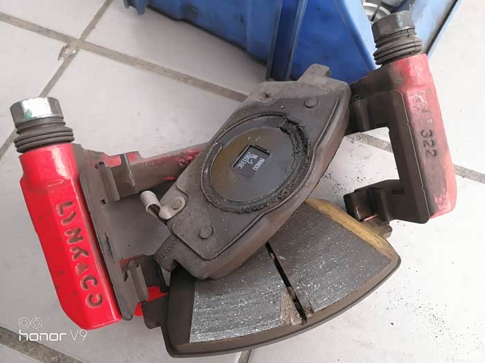 有领克的钢印,刹车片缺了个角,看不出什么品牌。