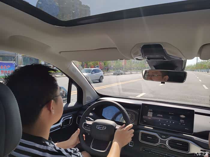 在郊区试驾感受的路上,我们边聊天边感受豪越的各方面表现,操控灵活,动力强劲空间宽大。