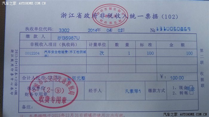 近光灯引起的),但至少是通过了,万幸呀....不知道为什么?新车也有这问题?????来到办事窗口办理省下来的手续,最后才交了100元