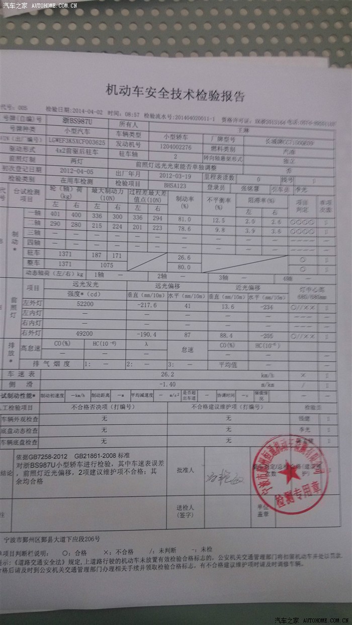 看见这检测结果了吗?车速表有误差?(纳尼,会死人的);近光灯也有偏移(不知道是不是换过