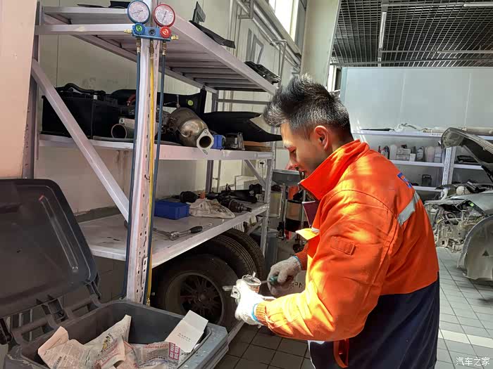 今天一早提前先打电话进行了预约,前往维修服务站进行更换。进站后,因为提前预约很顺利的就进入了维修车间(看了一下,今天维修保养的车辆也不少)。