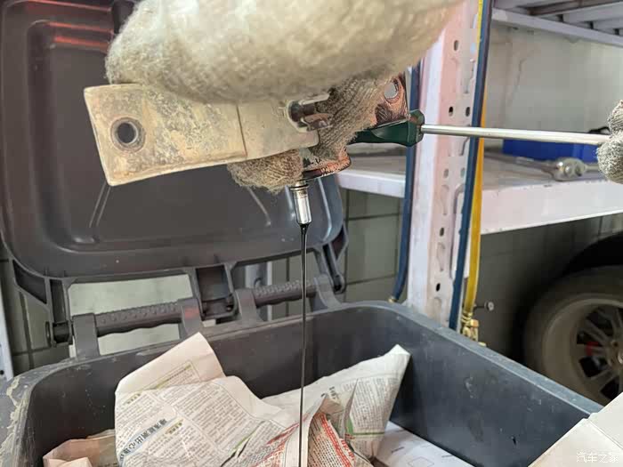 大家再看看流出来的汽油是不是很浑浊?从这大家就能明白汽滤的作用了吧!