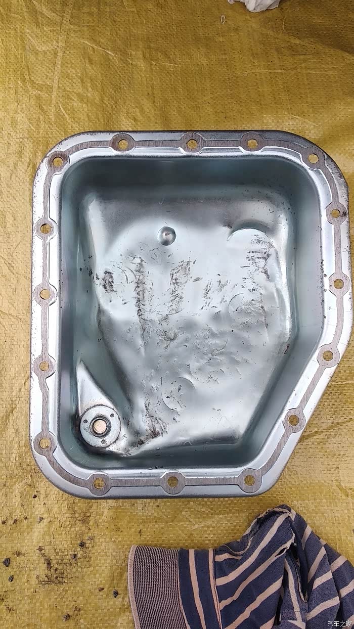 刚刚入手一台11年3月份的自动猫,给老婆代步用,由于变速箱油底壳撞变形了,干脆连油一起换了,都撞成这样了。
