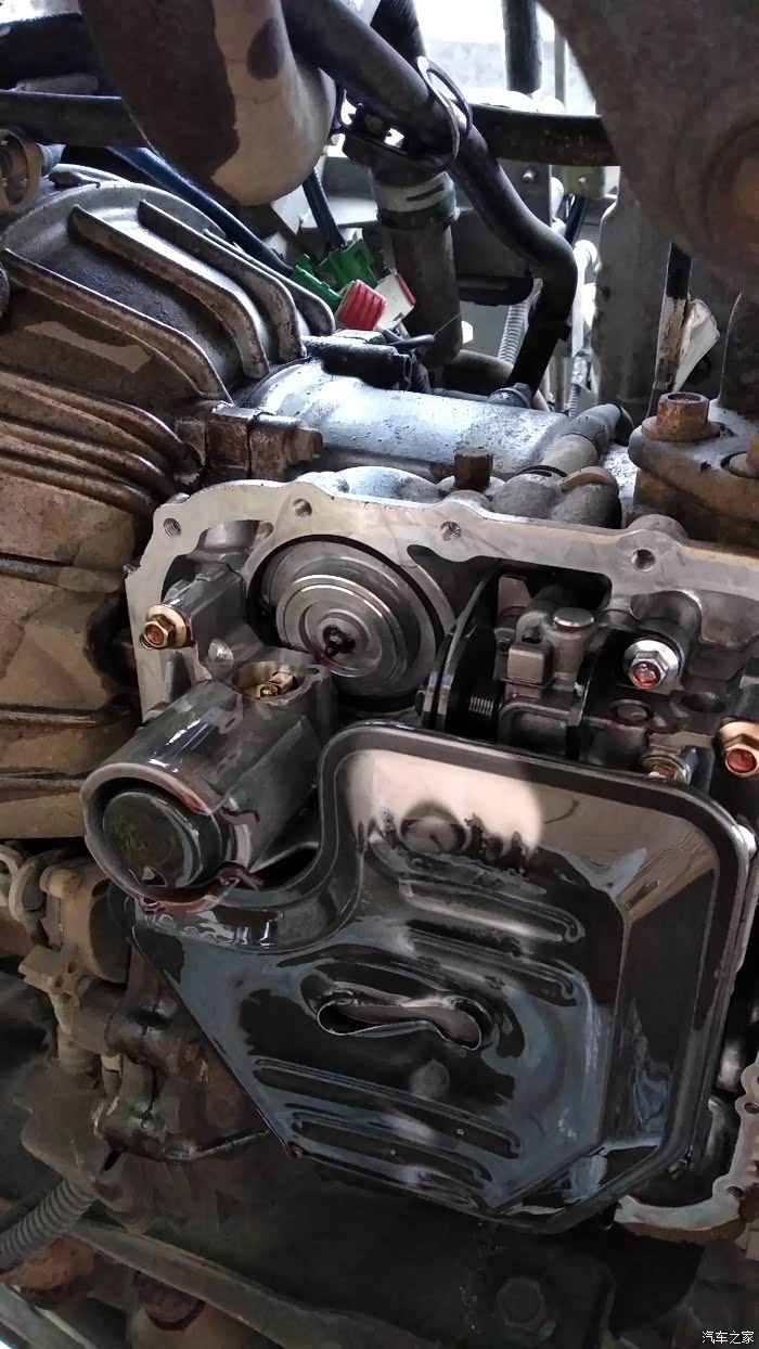 洗干净外表用干布擦干水份再装滤芯,注意的是滤芯螺丝有两短一长,长的靠轮胎的,装好滤芯把固定螺丝上紧后,再把p档销插回,要注意销有没有掉出来,然后上紧油底壳即可油底壳垫没烂所以不换,也不打胶,怕胶堵滤芯。