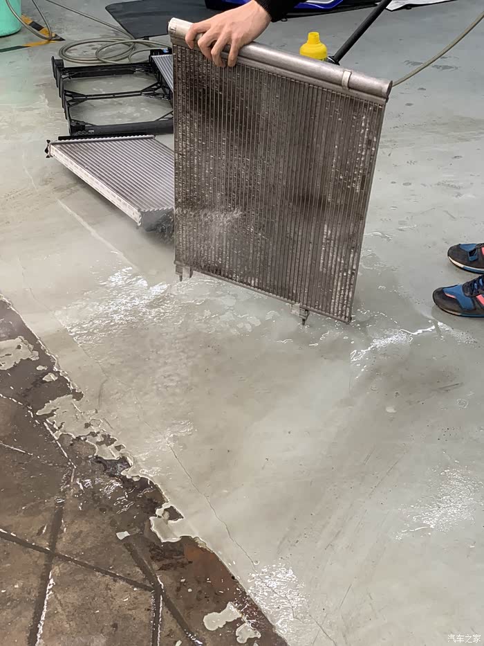 水箱最后是要冲洗的,调好水枪的出水,顺着散热片冲洗 底下的盒接都是这两年来跟着我东跑西颠的尘泥