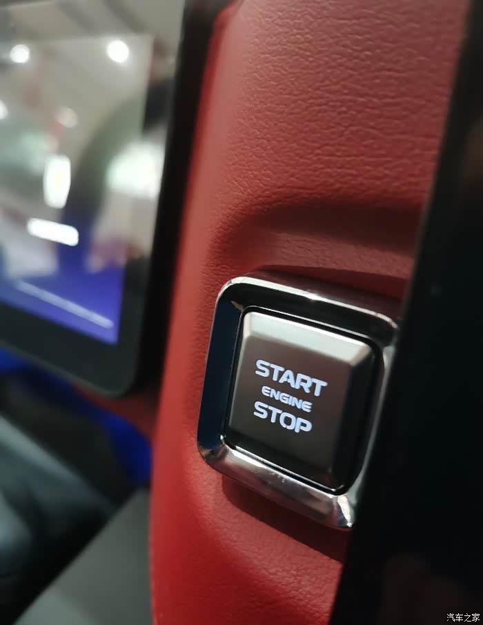 再熟悉不过的一键启动按键。整体内饰给人的感觉跟外观一样,时尚又科技,首先是打开车门,映入眼帘的内饰撞色设计。