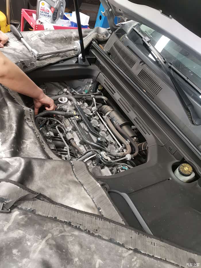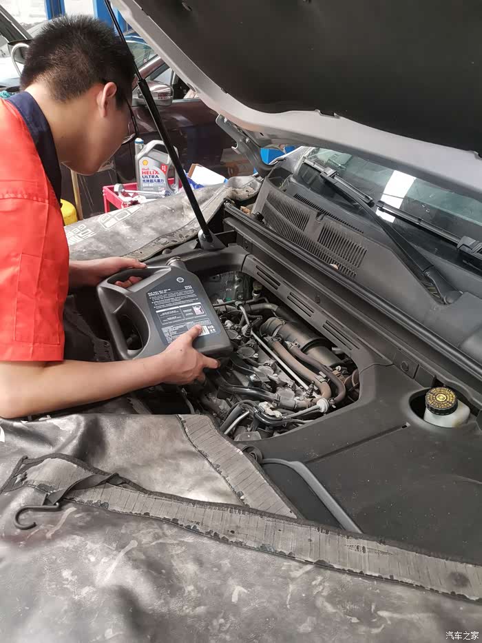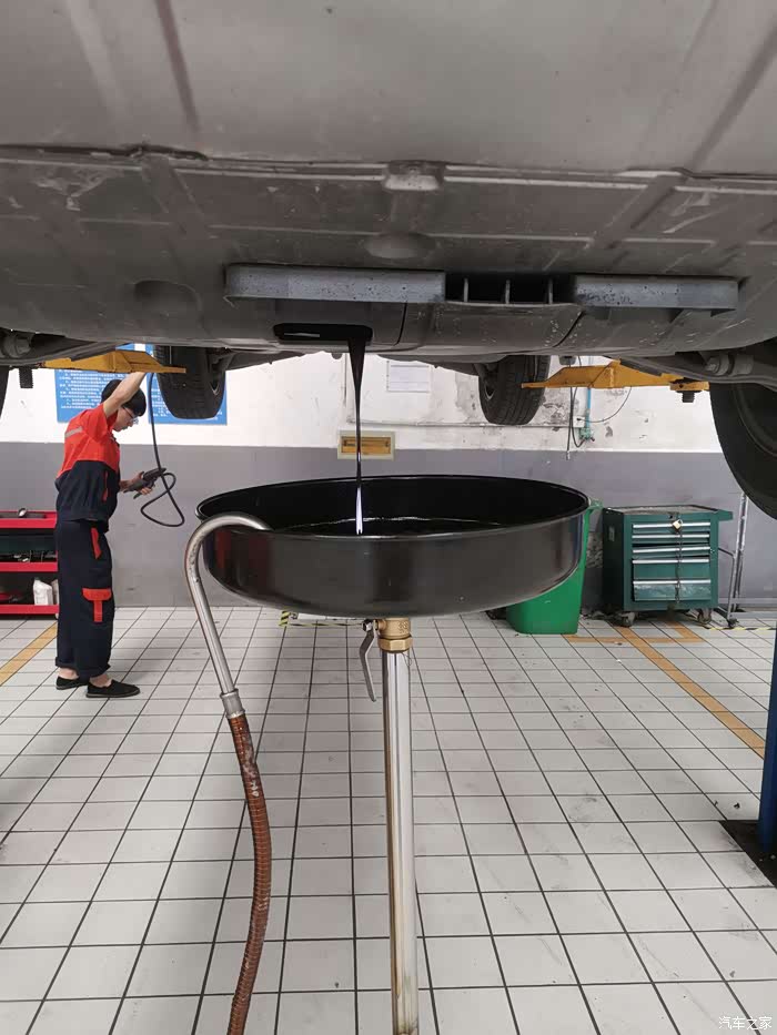 保养第一项,放机油。虽然一直用全合成机油,理论是一万公里一换,但是机油的时效也只有半年,所以机油的更换公里数或者时间,以哪个先到为准。