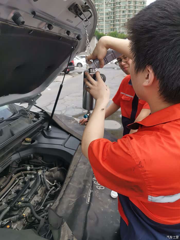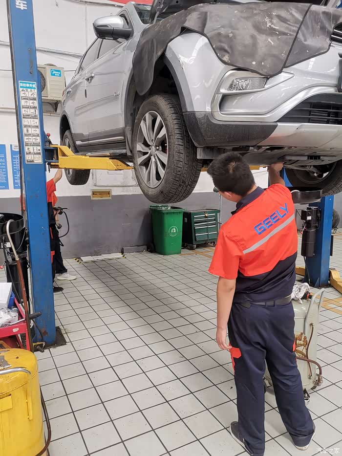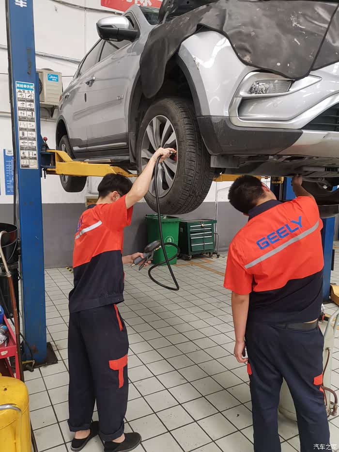 放旧机油的同时,维修人员也在检查轮胎的气压,夏天建议冷车胎压2.3