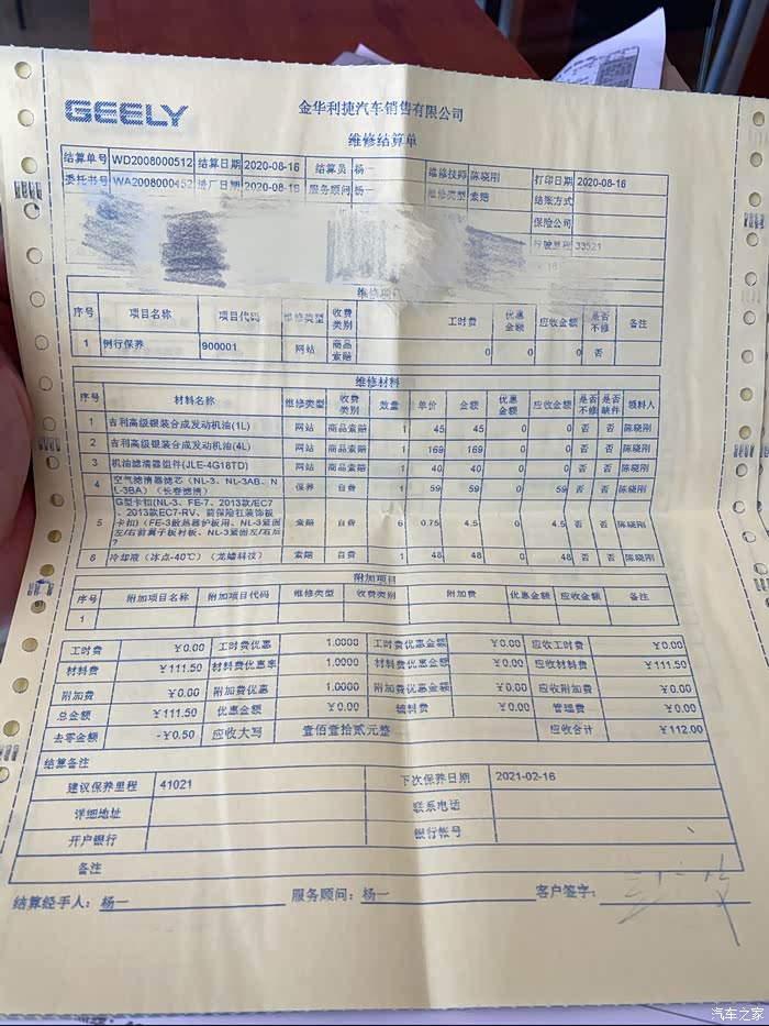 最后店里还是将爱车的外观清洗了干净。此次保养历时约2小时,从进站到离开,享受到吉利售后的各个服务人员给家人般的服务,真好!