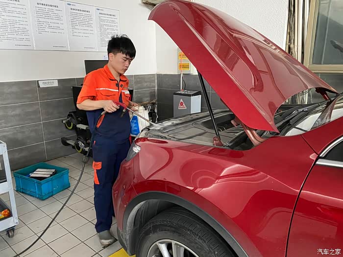安排爱车开始保养,电子显示牌也有相应的提示。