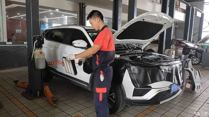 由于不是免费更换的项目,空气滤芯拿出来用高压吹一下就行了。