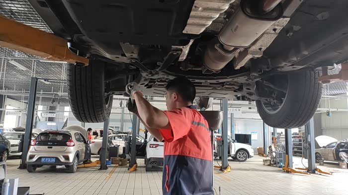 紧固底盘上面的各处螺栓,负责保养的这个小师傅还是挺仔细和认真的。
