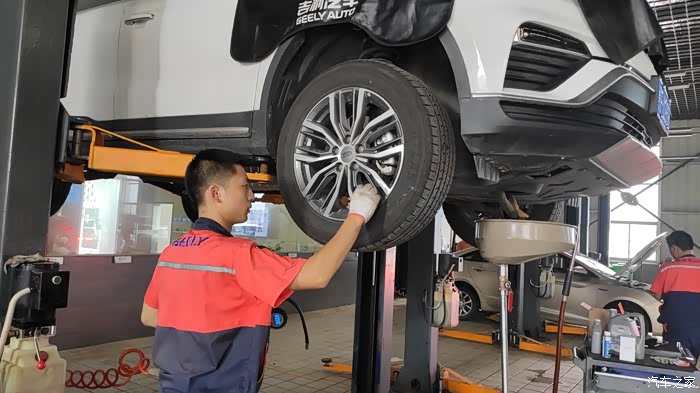 对四个车轮的气压进行检查、补充。博越这款车已经使用了一段时间了,给我的最大感受就是车身稳定扎实,过一些小坑和坏路,不用担心蹭底盘。