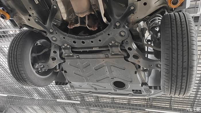 车辆升起后,也检查了下底盘,看看有没有生锈和磕碰的痕迹,目视一切正常。