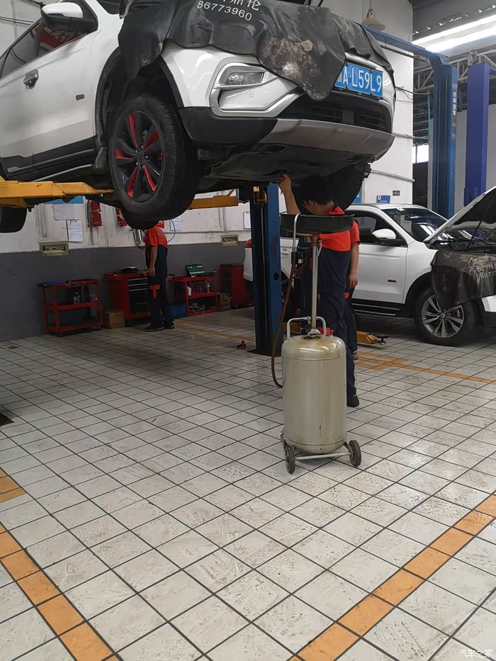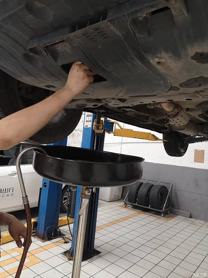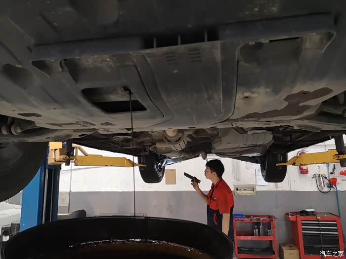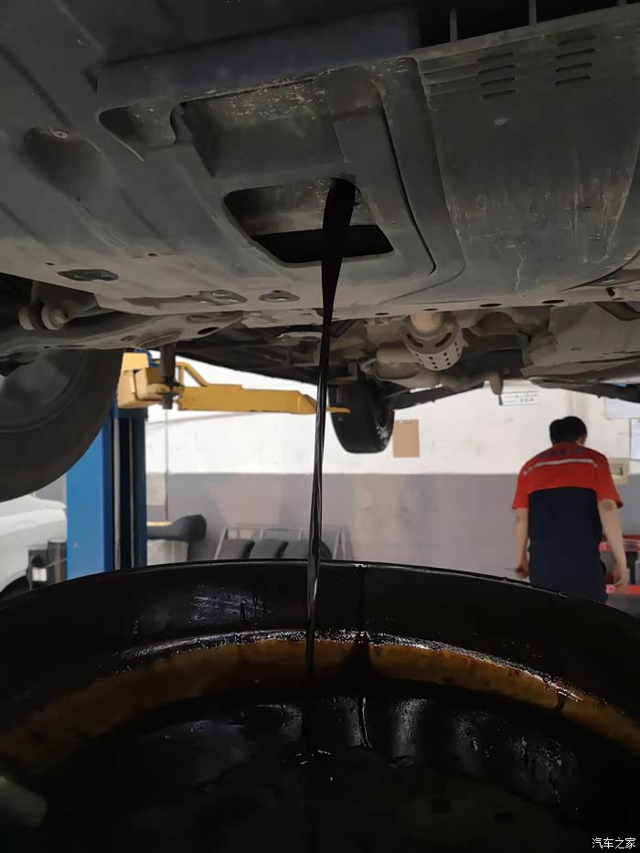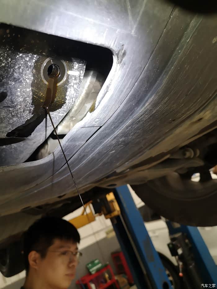 还有最后一点机油没放干净,一个小师傅在检查车况