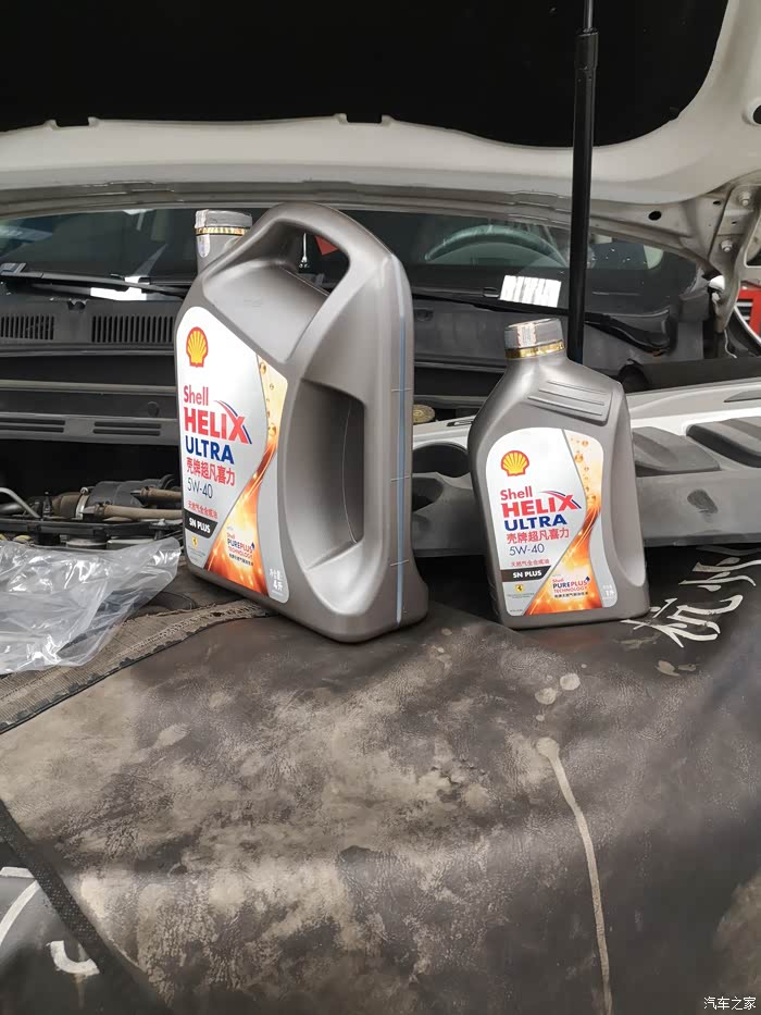 这次的机油用的还是灰壳5w-40,一大一小共5升