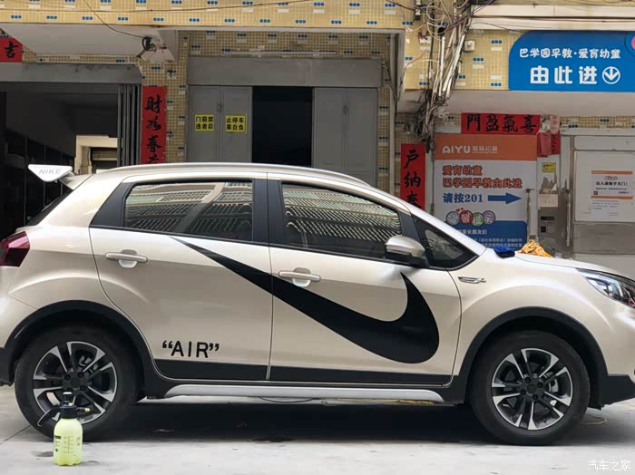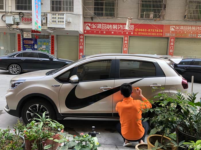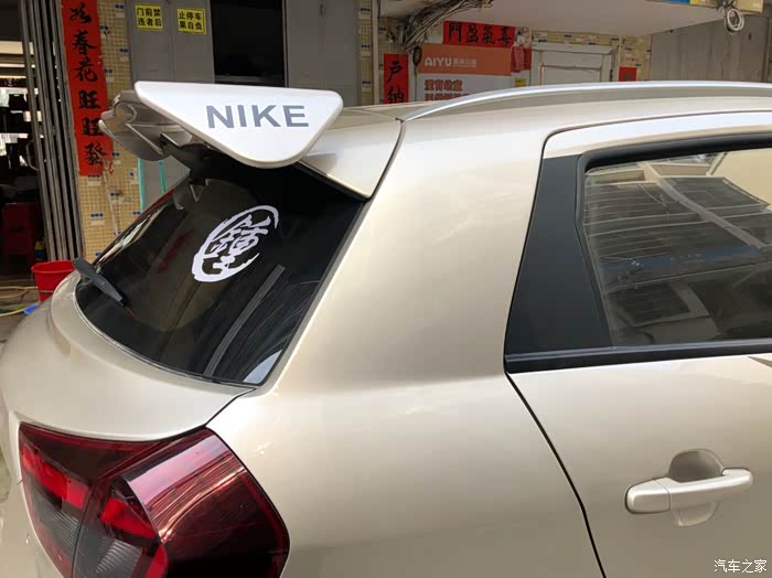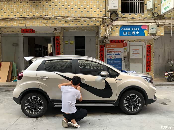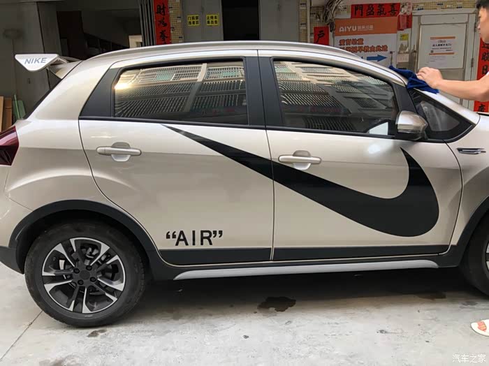 这两天跟朋友捣鼓着来给爱车做一下小改造,贴了NIKE的大logo,这个贴上去后那个感觉就上来了,贴主是个95后,也比较爱动手操作