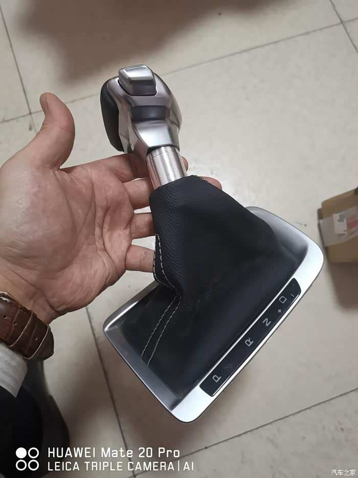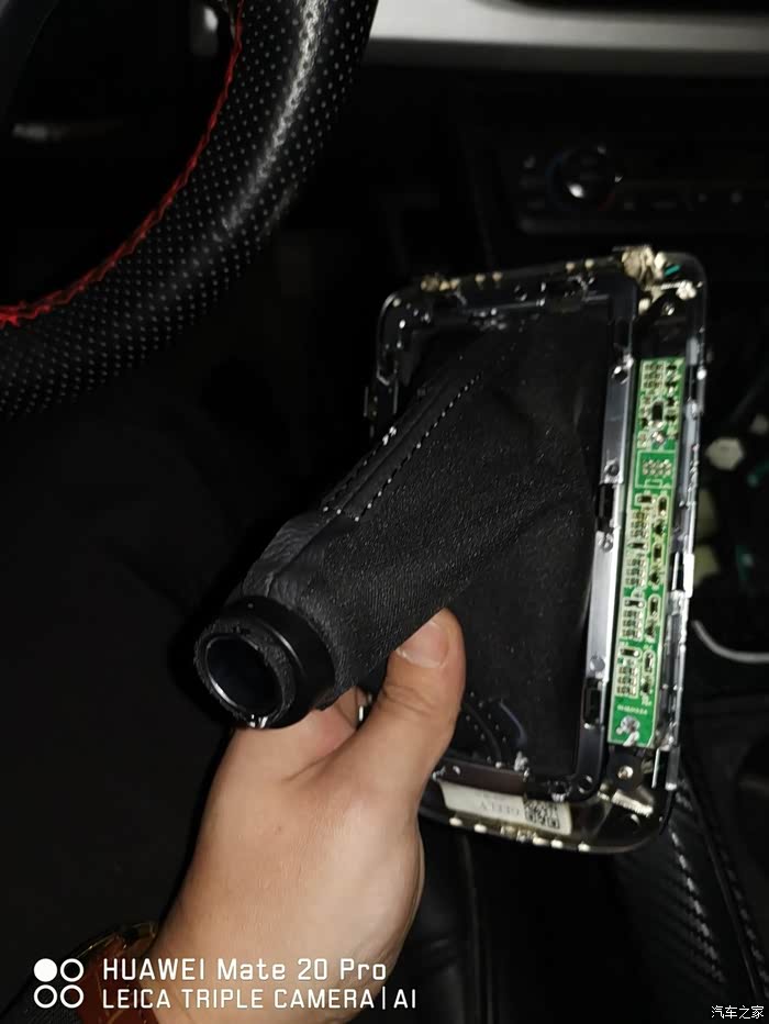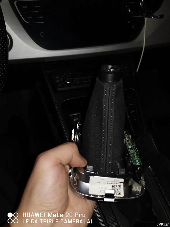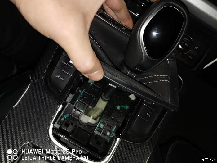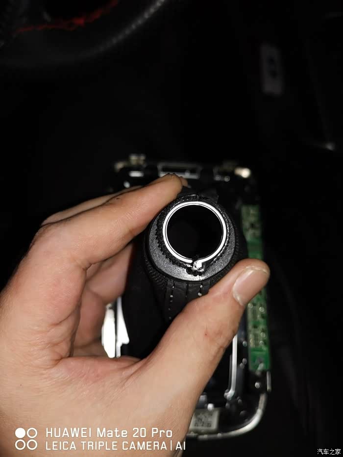 拿走原车的档把面板,准备回家安装新档把(车里晚上灯光较差,还是回家方便)