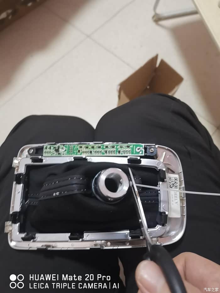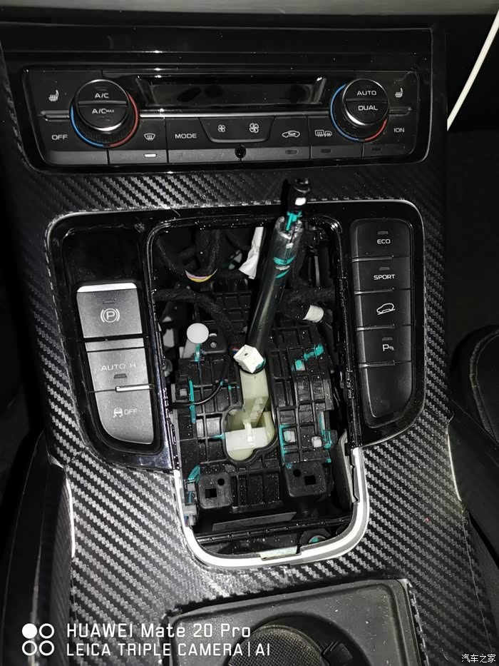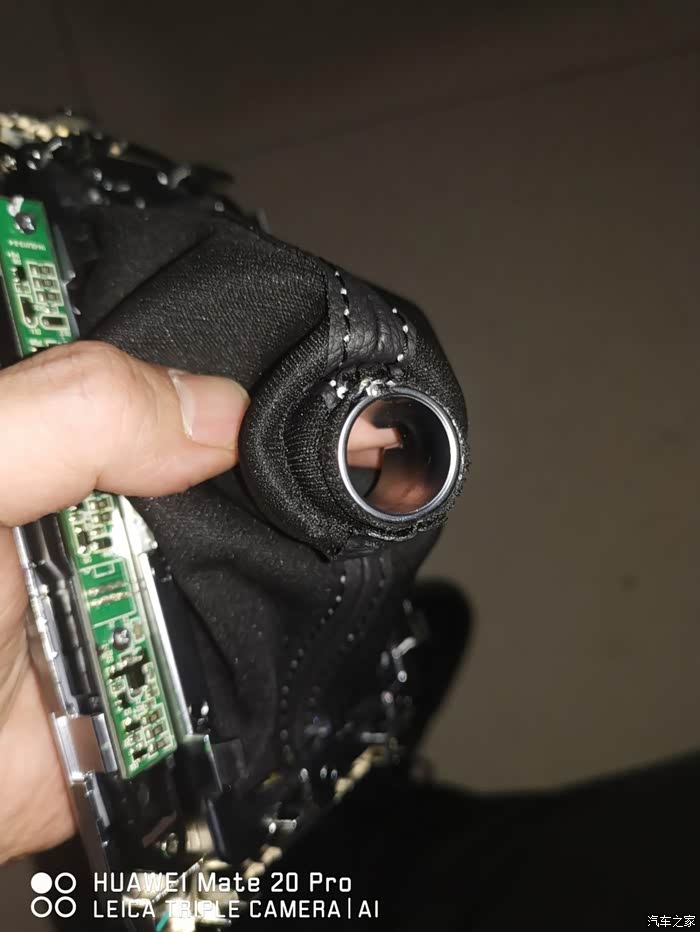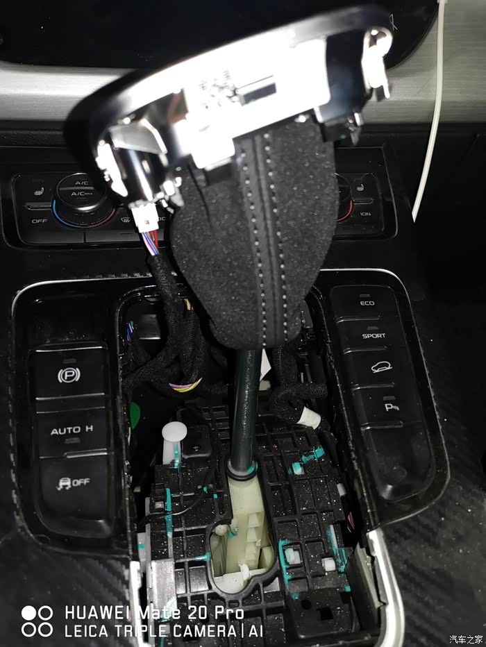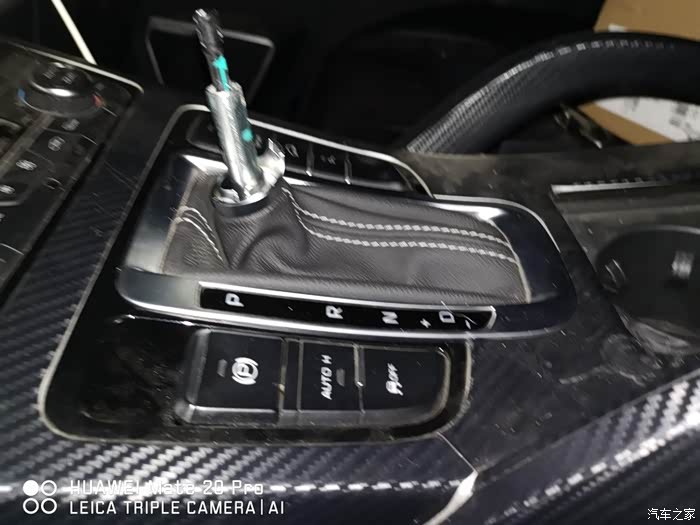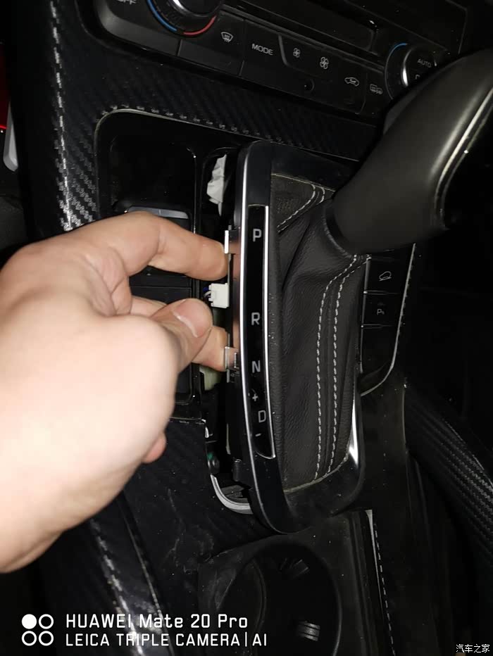 拿走原车的档把面板,准备回家安装新档把(车里晚上灯光较差,还是回家方便)