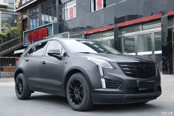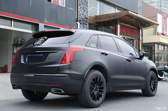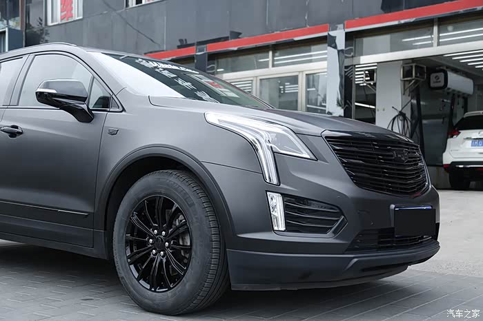 凯迪拉克XT5,全车犀利,硬朗的外观,战斧式的前后大灯,有棱有角的车身外观,满满的硬朗气息的线条感,这种车型的话,风格偏向硬朗化,经过对比研究,黑武士风格,安排上!首先来说,想要黑武士风格,纯黑化就显得尤为重要,全车的银色亮条部位就一定要黑化,哑光色肯定是不合适的,亮光黑安排。行李架,中网,车窗亮条,全都亮黑改色搞定,省去了选配的高昂费用。