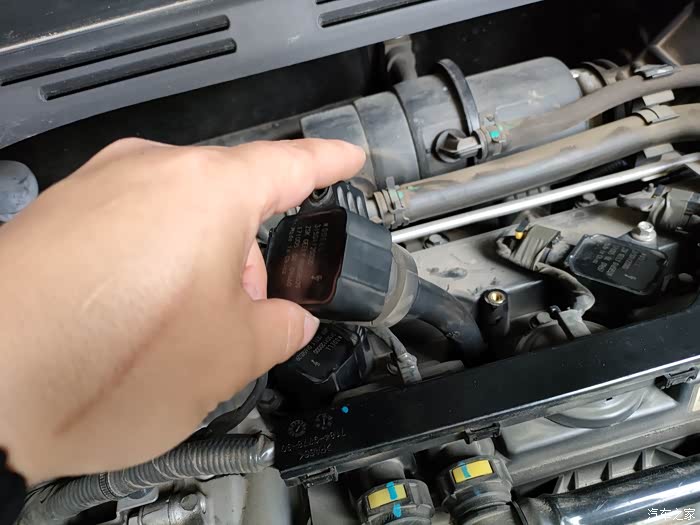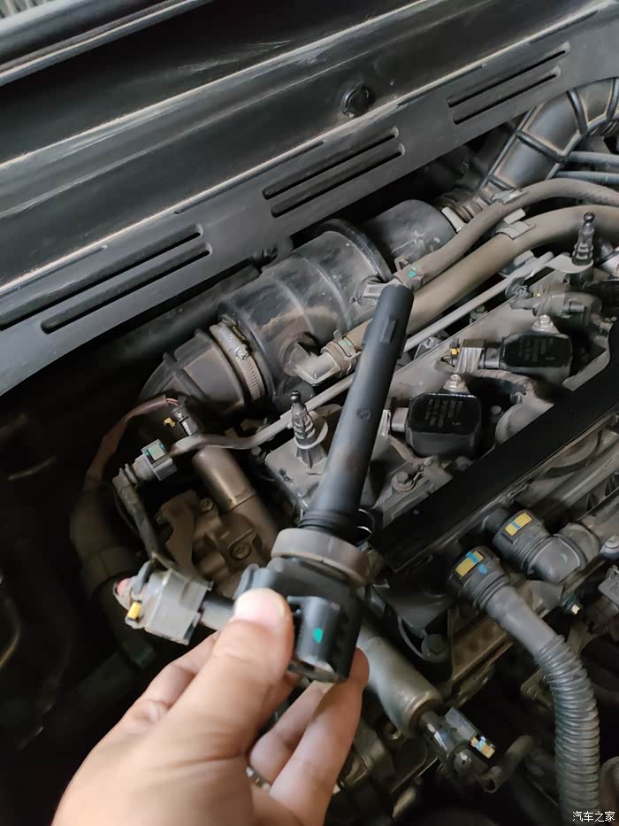 我是拔线头之前就把点火线圈拿出来了,因为点火线圈的胶套是软的,弯一下就出来了。