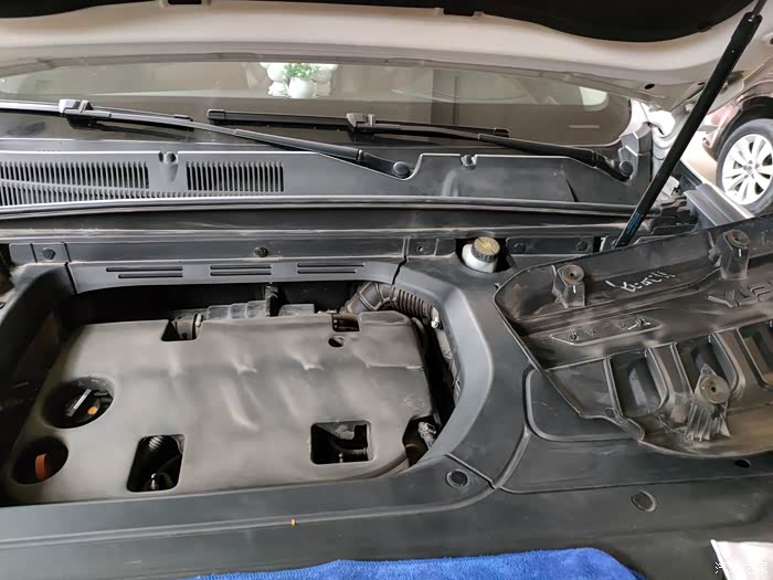 火花塞就在发动机盖板下面,还好不用拆护板。