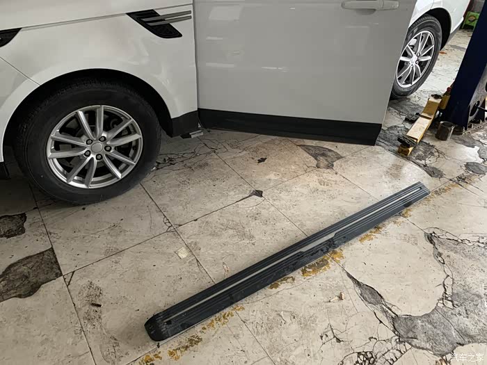 由于怕提升车子把踏板顶坏所以师傅要把踏板拆下来,我执意说不用拆没事的,原厂有千斤顶预留口的,他们还是把踏板拆下来了。也对,多一事不如少一事
