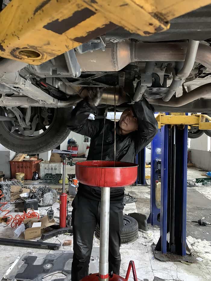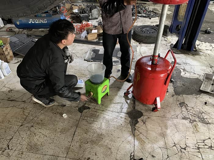 再注入新的变速箱油(这些步骤看着不难,我跟老板说能不能拜他为师收我做小徒弟,老板跟我说我做不了,做汽修还是个子矮点的比较吃香,不然个子高的在车底修车要一直弯着腰很累的哈哈)