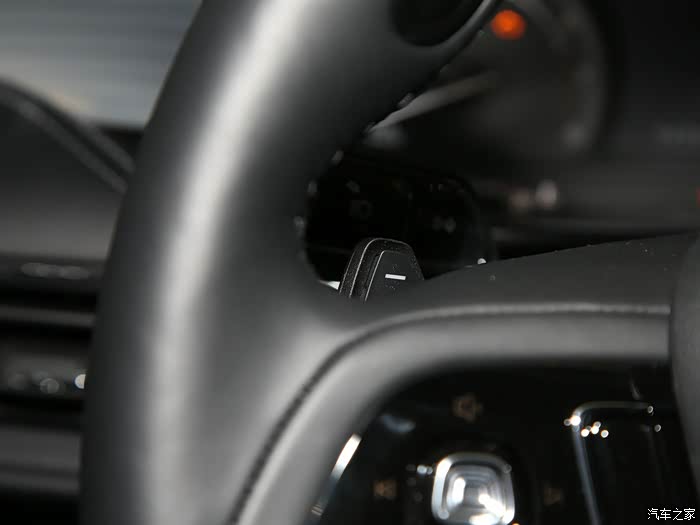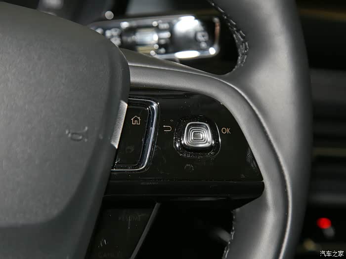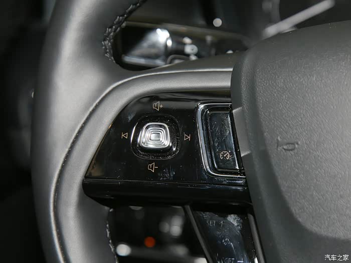 真皮方向盘握感舒适,多功能按钮采用摇杆操作,相对来说开车的时候进行盲点会非常方便,不用自己去找方向盘上面的各种按钮。