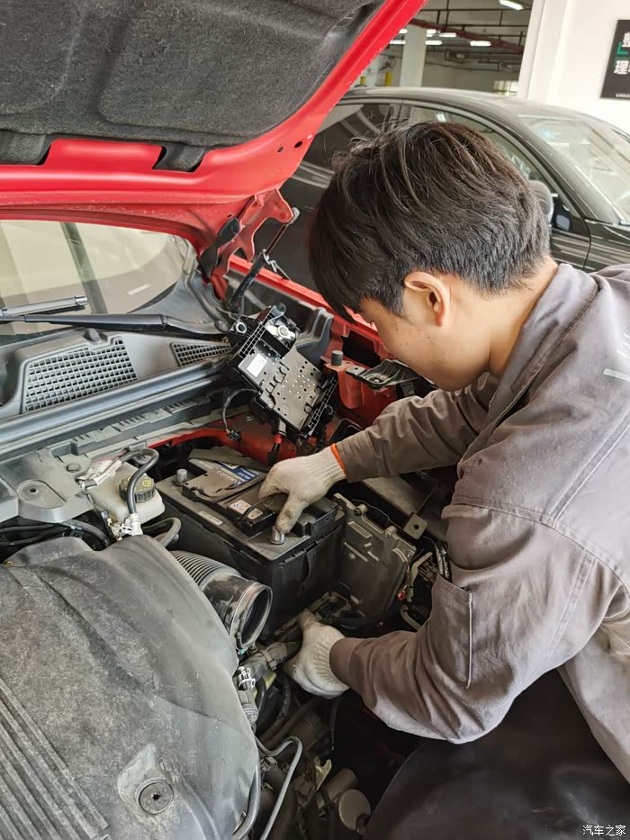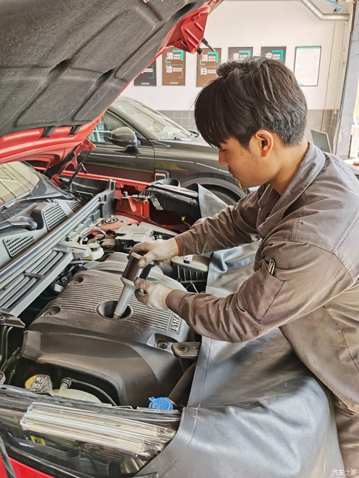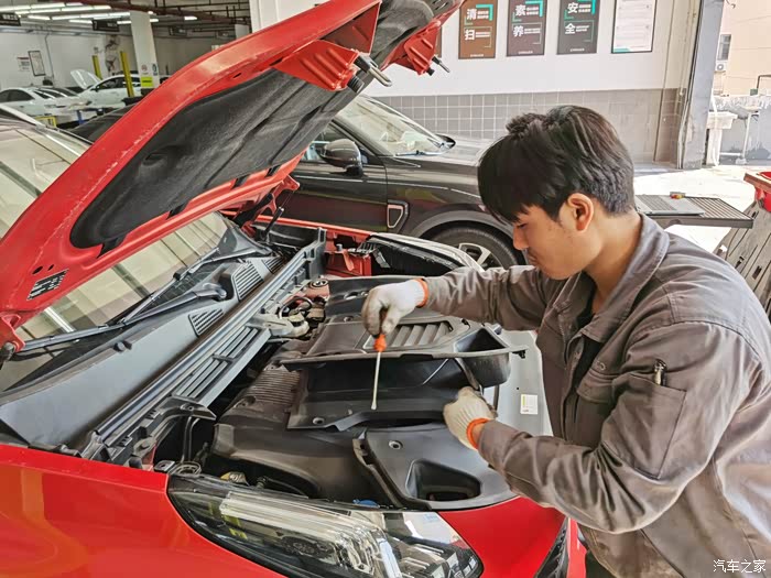 红糖下来了,小哥准备把新的机油倒入发动机,拆护板前,还帮忙清理了掉落在玻璃窗下的树叶