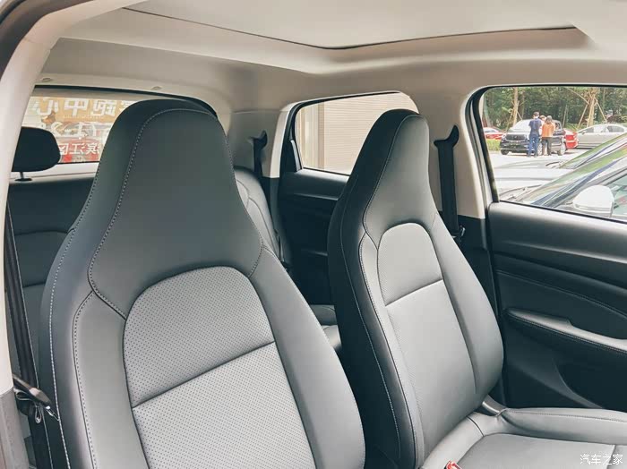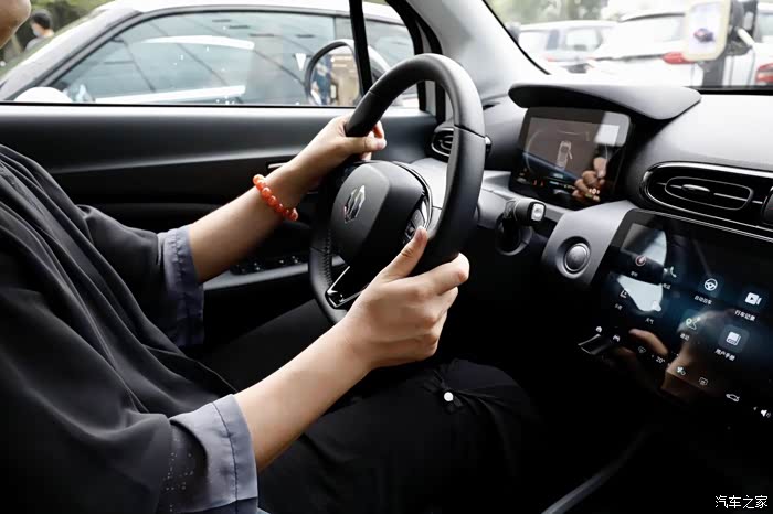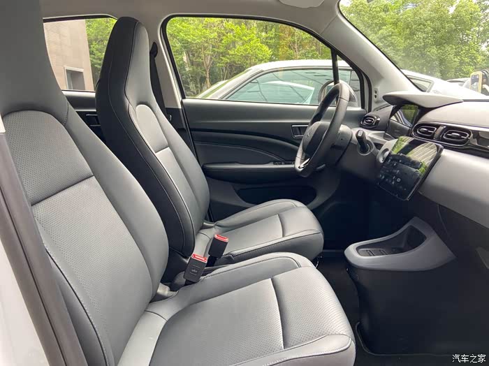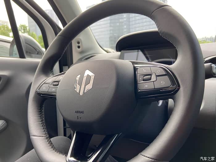 迫不及待地进车,咦,座椅和方向盘还是皮质的,坐上去握住方向盘试试,不硬,挺舒服。