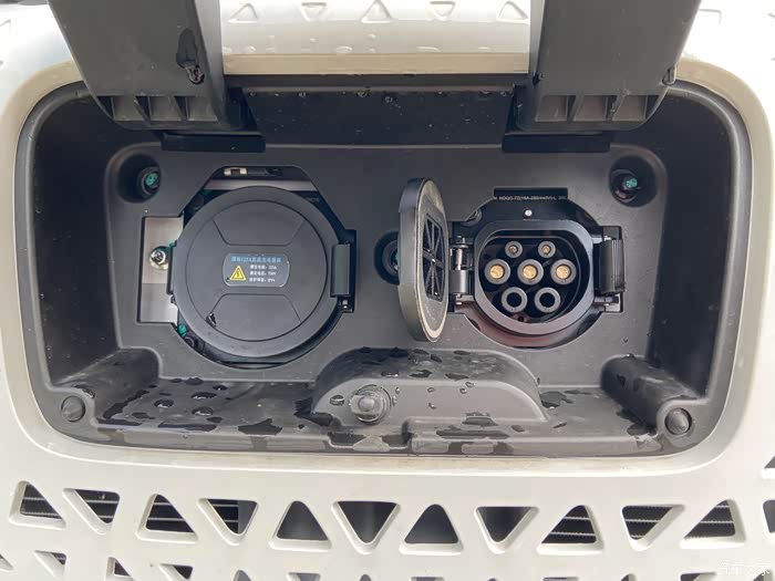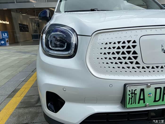 C形前后大灯、镂空中网(个人更喜欢那个微笑前脸,据说后续可以免费更换)、两个模式的充电口,这些细节还挺精致。车外边还有很多小圆点,零跑的小姐姐介绍说是传感器,给辅助驾驶功能用的,有点不明觉厉。