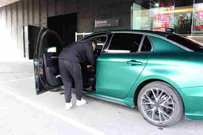 经过近一小时的检测与更换,就准备迎车内新空气了。在我准备离开的时候,老巧不巧来了辆大03+,我厚着脸皮把车开到它旁边想蹭个热度,你还别说,这两辆车放在一起回头率绝对爆棚,我感觉我的颜色更胜一筹呢!
