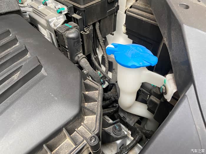 这个是玻璃水添加口。这里提醒车友,不要加自来水,用玻璃水利大于弊。