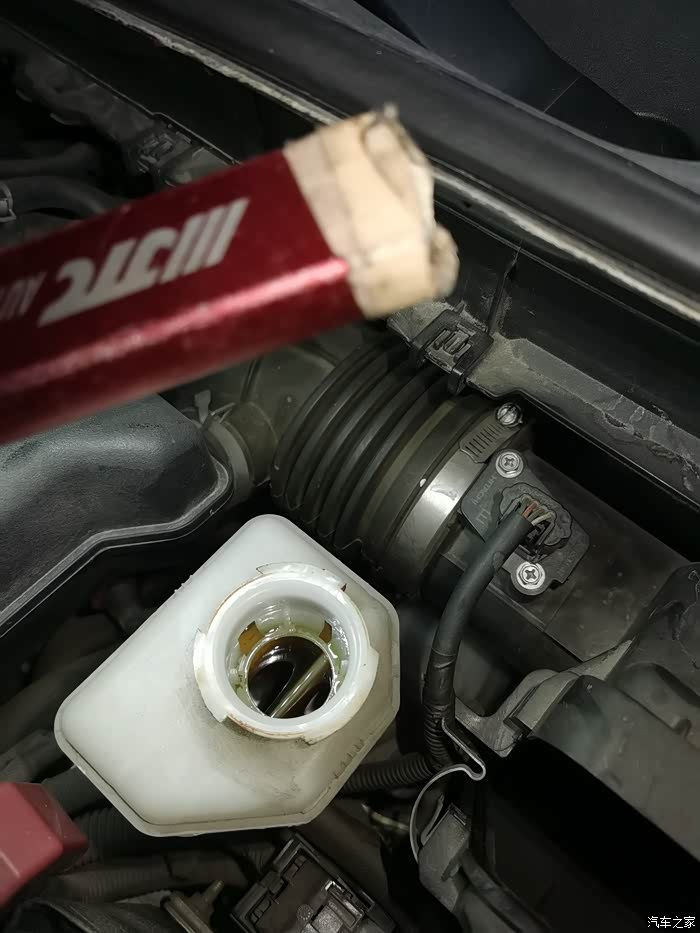 刹车油可以在这个位置观察,如果发现刹车油变黄又黑的话就可以换的了。