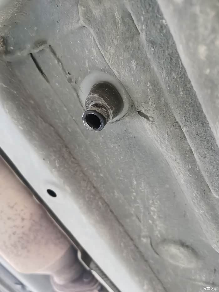 空调出水孔,外露的挺好的。好像有些车的是漏在车架里的