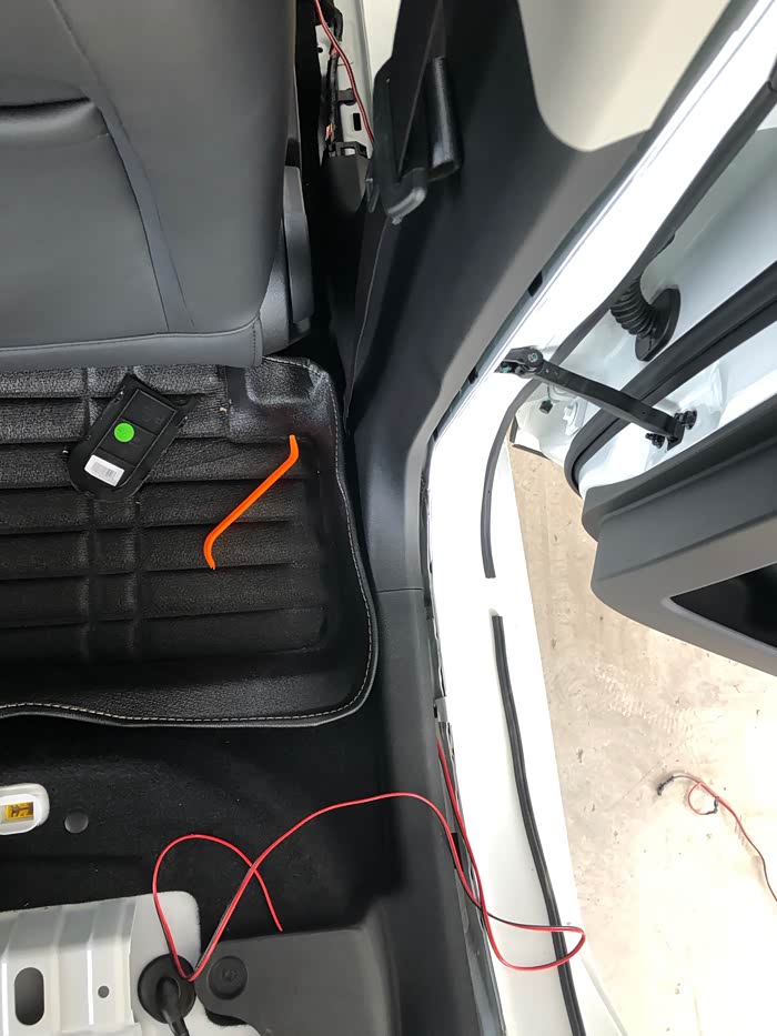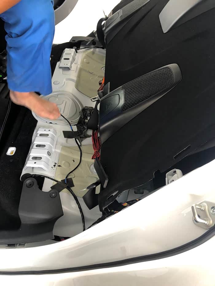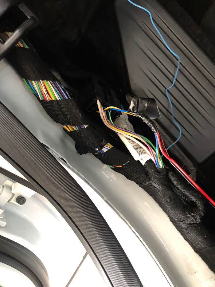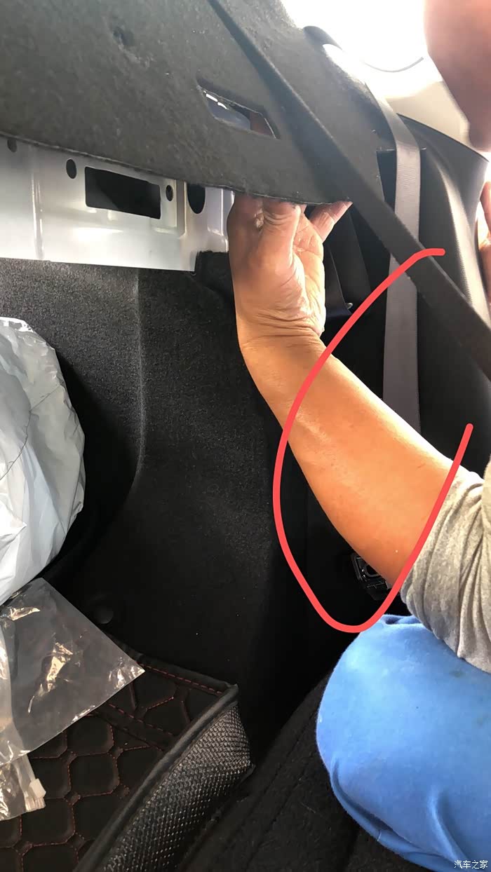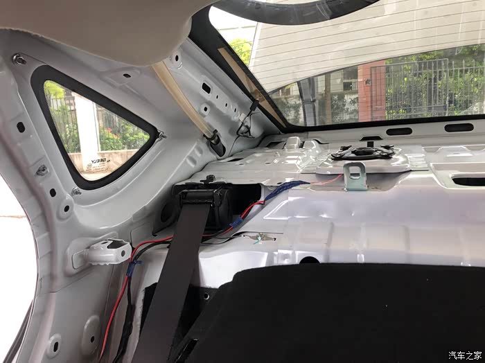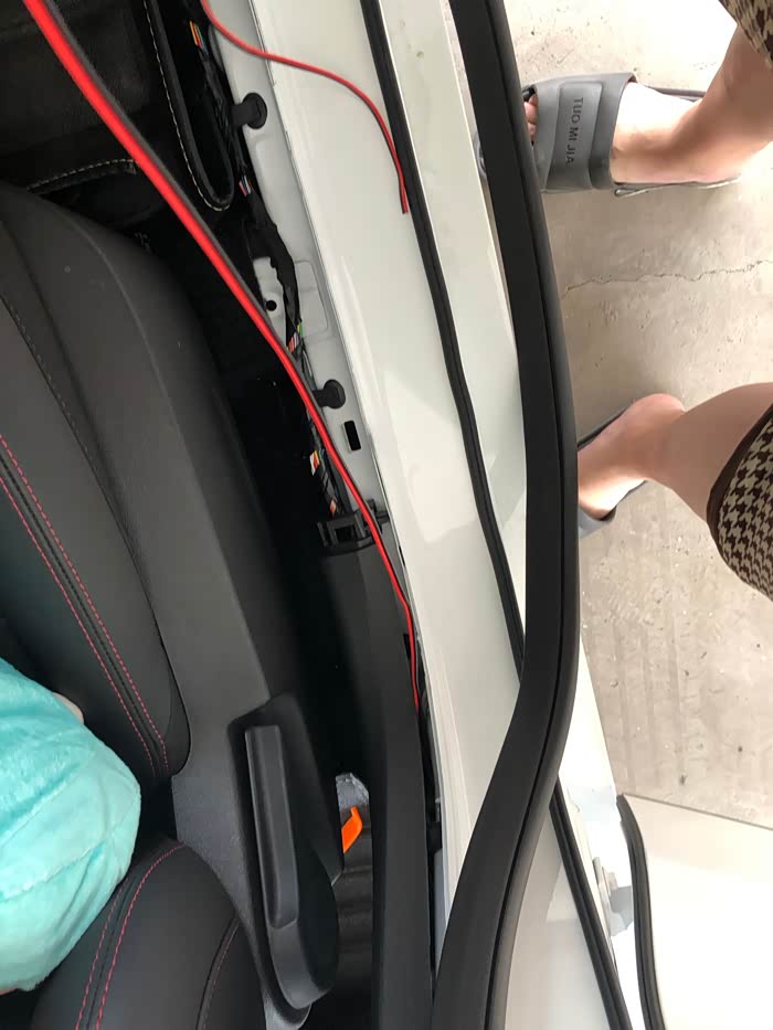 中间的盖板不用拆,是B柱的盖板喔,用根铁丝把线拽过来就好,省时省力。