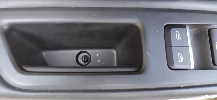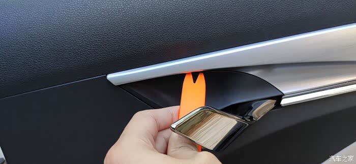白色盖板,有一个小的白色方形盖板,撬开有一颗十字螺丝,卸掉,现在白色与黑色盖板可以整体向车内方向扒开了。