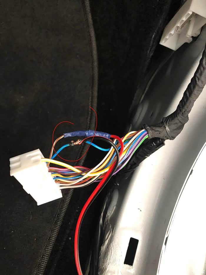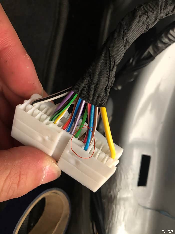 然后找到对应的颜色,我的是最上面的黑色插头找到的。(额外引出蓝色线是我接的锁车关窗模块)