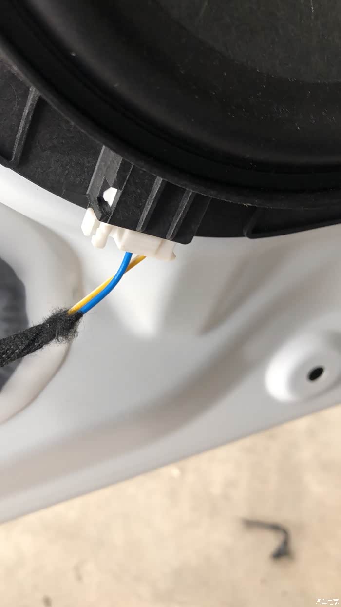 7.我的喇叭左右分开走的,因为我不会拆中控,只能顺势接到前排车门左右两侧的喇叭线上。