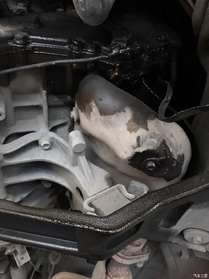 发动机下面油污满满。