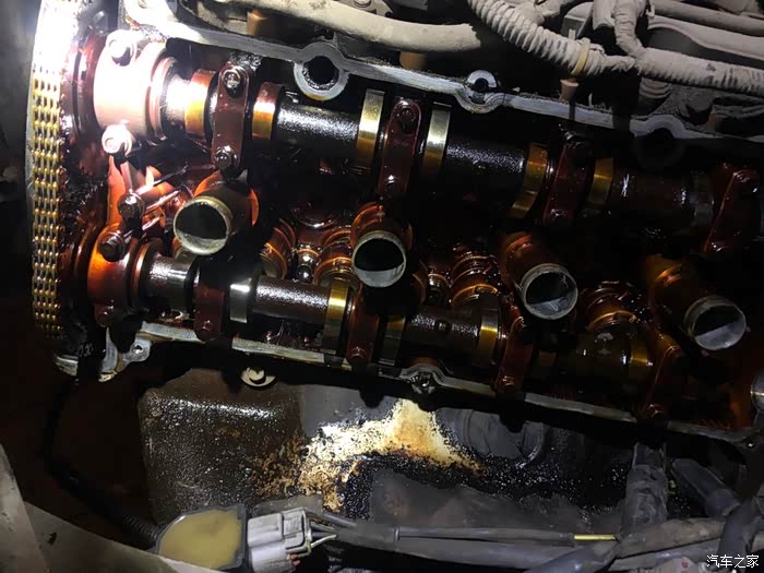 拿下气门室盖,积碳严重。这是一辆二手车子,之前的保养没有到位。