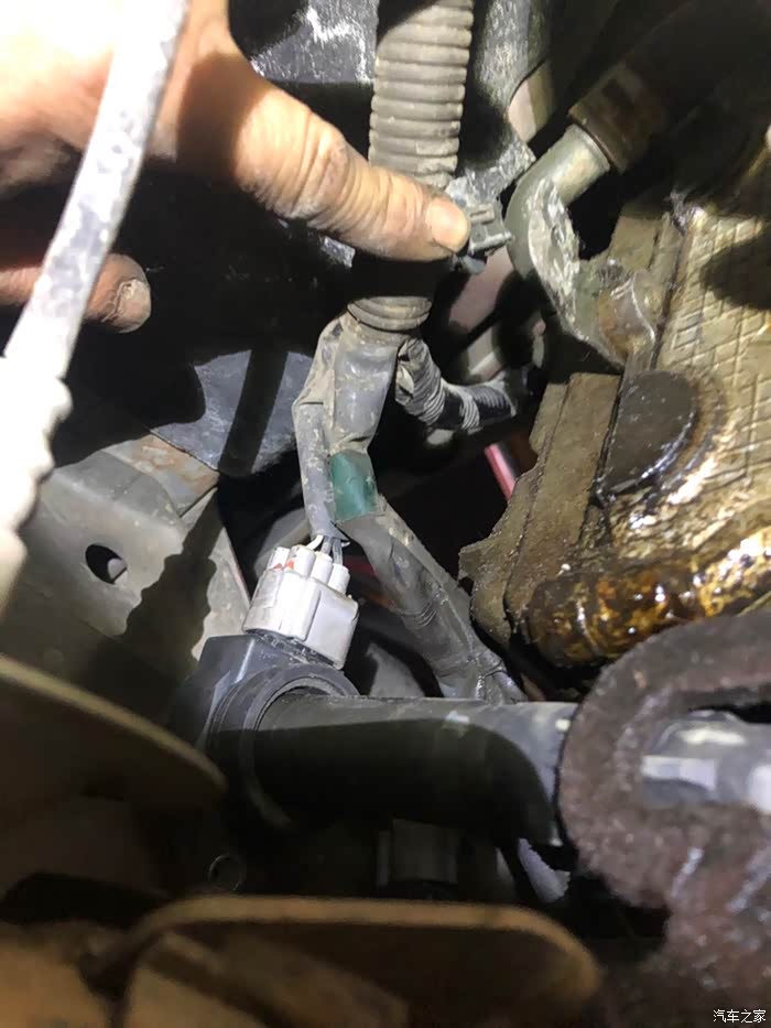 发动机左边下角有个小支架,是固定线束的,比较隐蔽,注意观察。