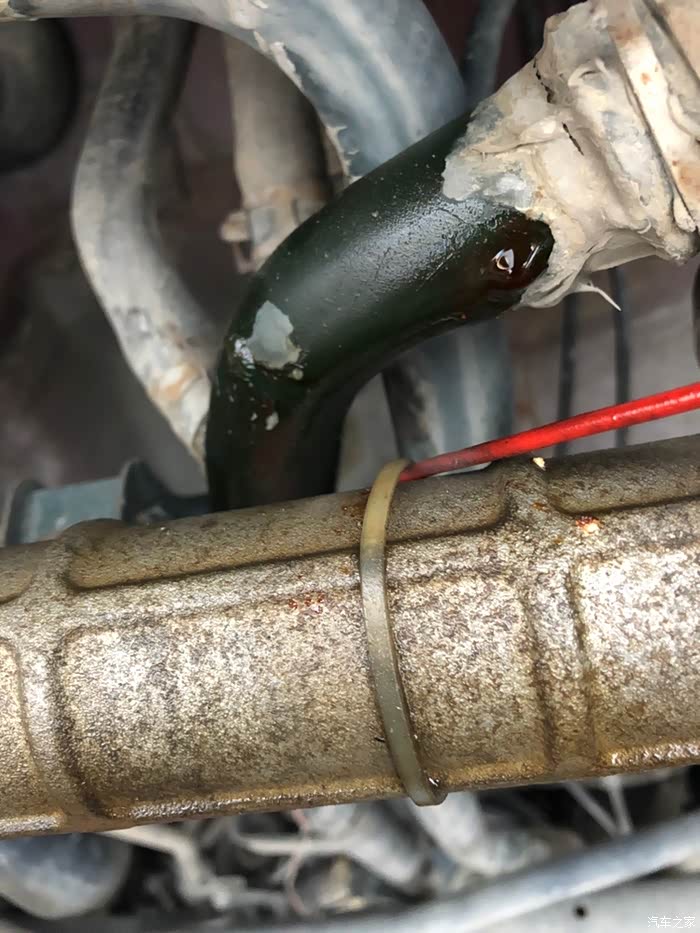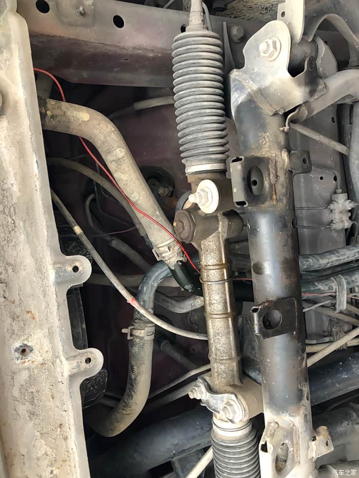 方向机碍事,更换水管需要把它拆卸。