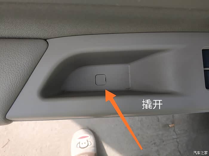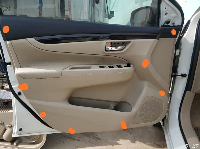 第三步:八个卡口全部下来以后,轻轻晃动门板就摘下来了。注意取下之后不能立即拿开。内饰门板和门之间还有控制线链接。控制线都是卡扣链接方式,将卡扣断开。内饰门板就可以摘下来。
